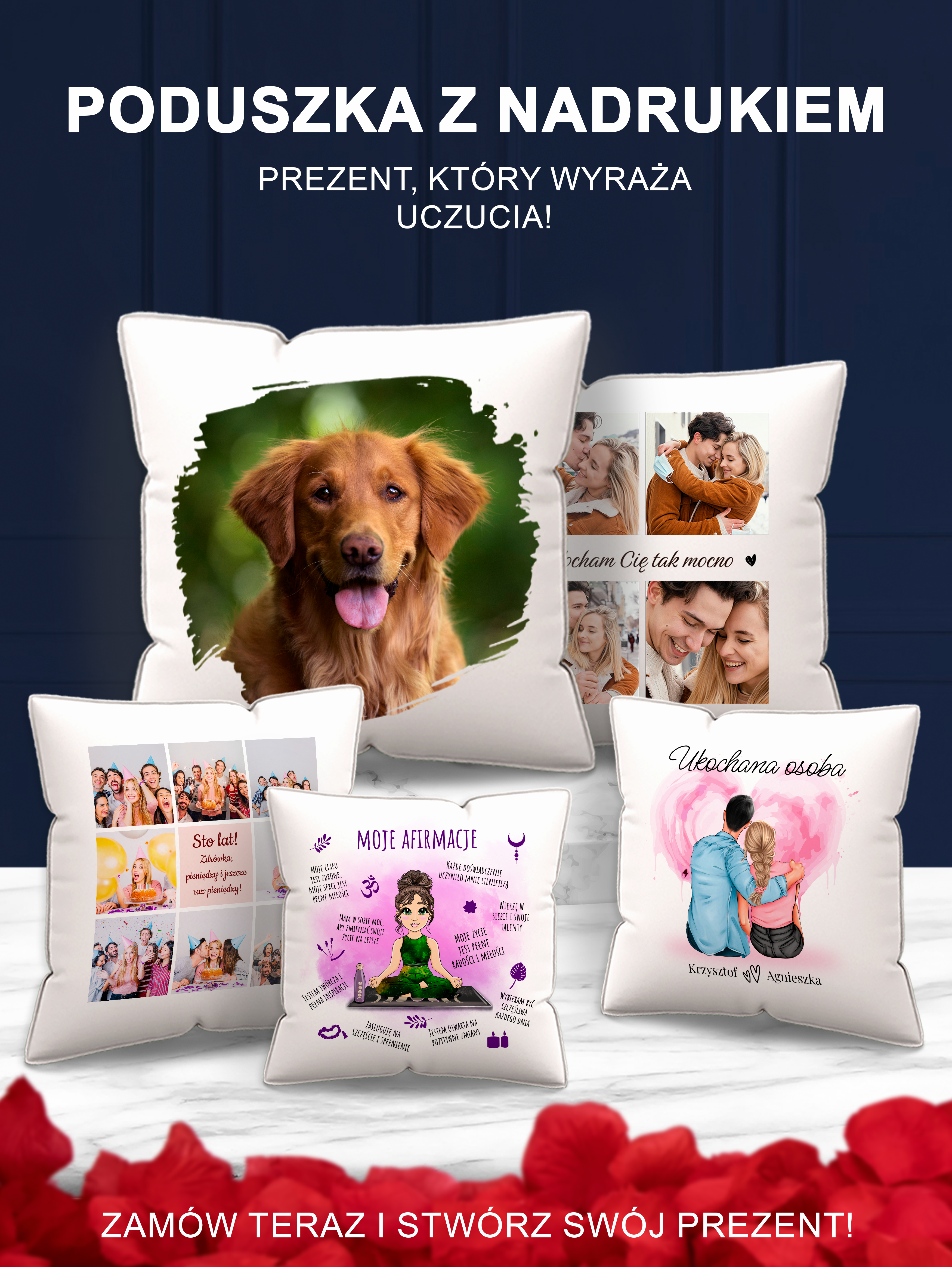 Czasem to właśnie drobiazgi wywołują największe emocje. Mały gest, który niesie ze sobą wspomnienia, ciepło i coś bardzo osobistego. W świecie, w którym każdy dzień jest coraz szybszy, warto zatrzymać się na chwilę i podarować bliskim coś, co przypomni im, że są dla nas ważni. Poduszka z nadrukiem to nie tylko dekoracja – to miękka pamiątka, która każdego dnia może wywoływać uśmiech. Może to być rodzinne zdjęcie, śmieszny napis, a czy ulubiony cytat. Możliwości są niemal nieograniczone. Wybierz jeden z wzorów, dodaj niezbędne dane a poduszka własnym nadrukiem trafi w Twoje ręce w ciągu kilku dni!
