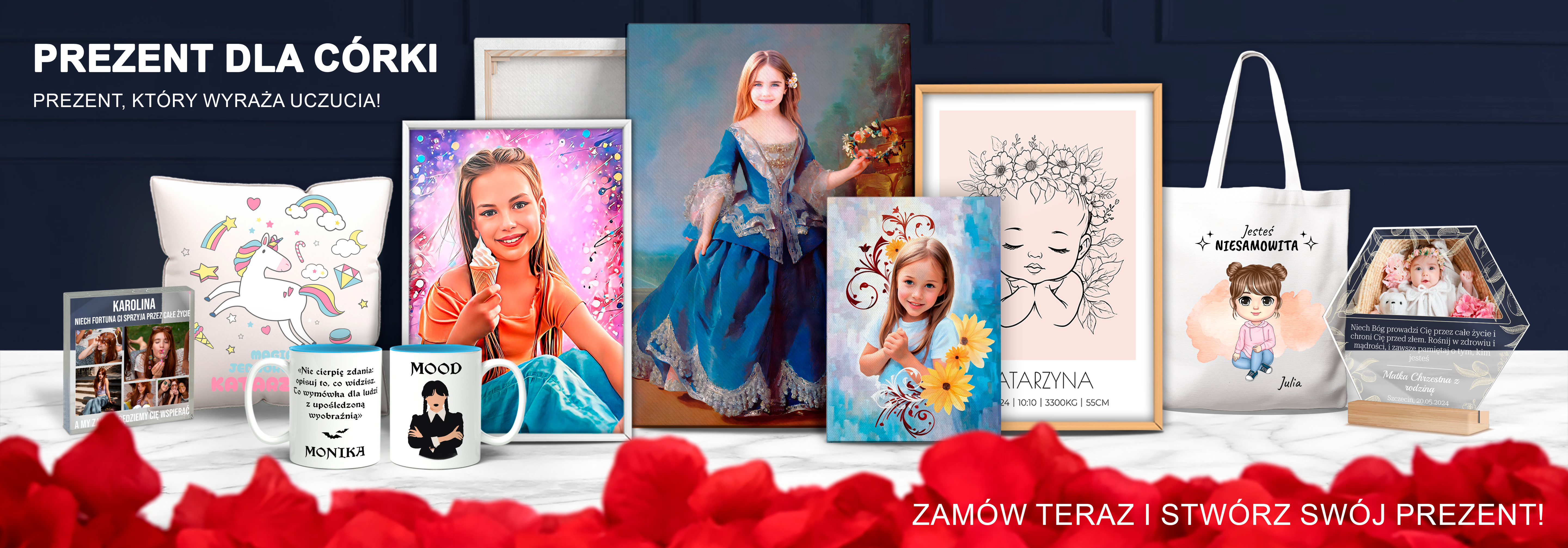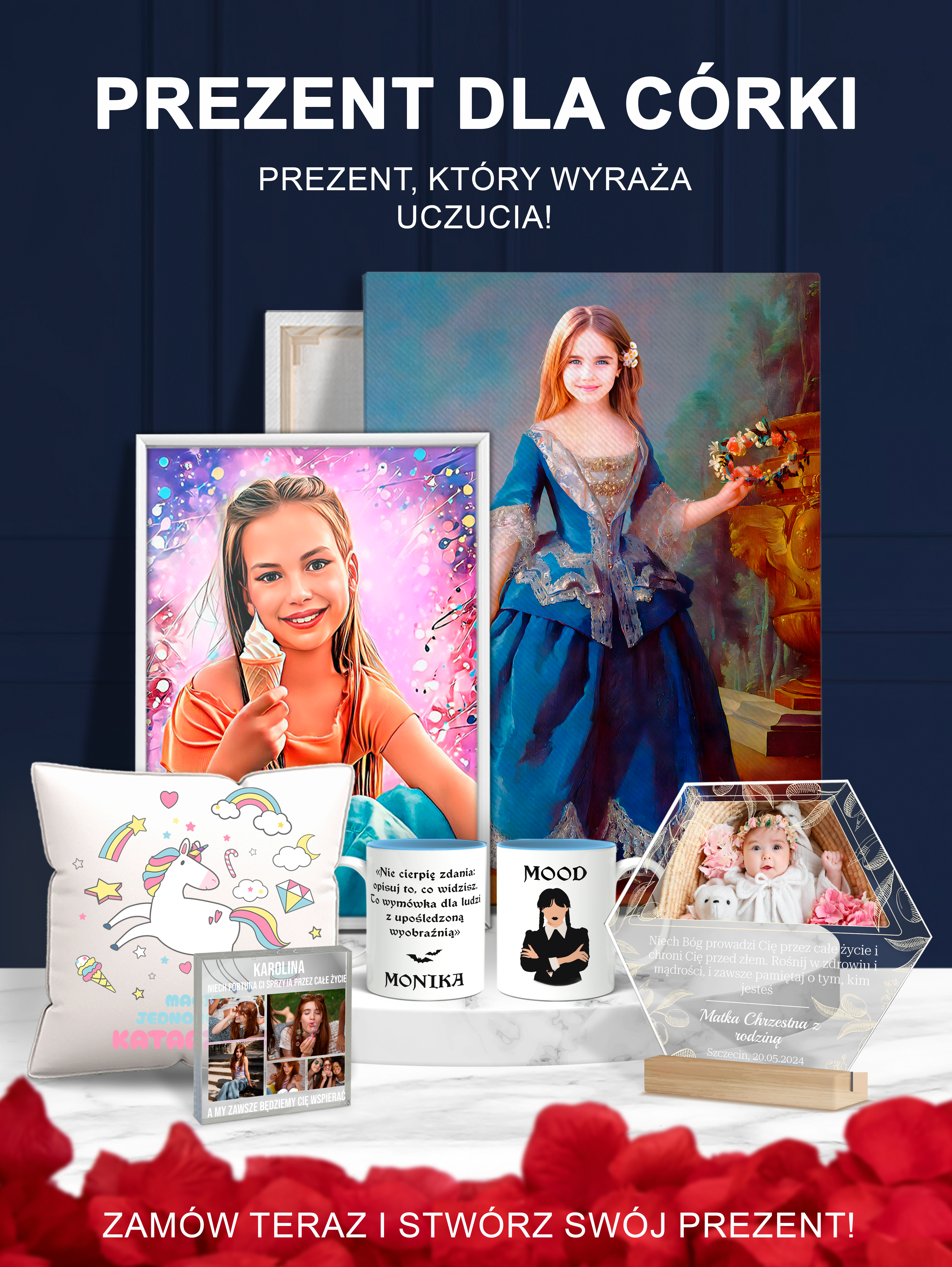 Dzień Dziecka to doskonała okazja, aby podarować coś wyjątkowego i sprawić radość swojej córce. Spersonalizowany prezent to najlepszy wybór, ponieważ podkreśla uczucia, jakie łączą rodziców z dzieckiem i nadaje podarunkowi osobisty akcent. Świetnym pomysłem są zestawy prezentowe, które łączą różne drobne upominki, takie jak kubki czy obrazy i grafiki do pokoju. Warto też postawić na poduszkę z nadrukiem, która będzie codziennie przypominać o wyjątkowości relacji rodzica z dzieckiem. Spraw, by Dzień Dziecka był jeszcze bardziej magiczny – wybierz prezent na Adamell.pl!