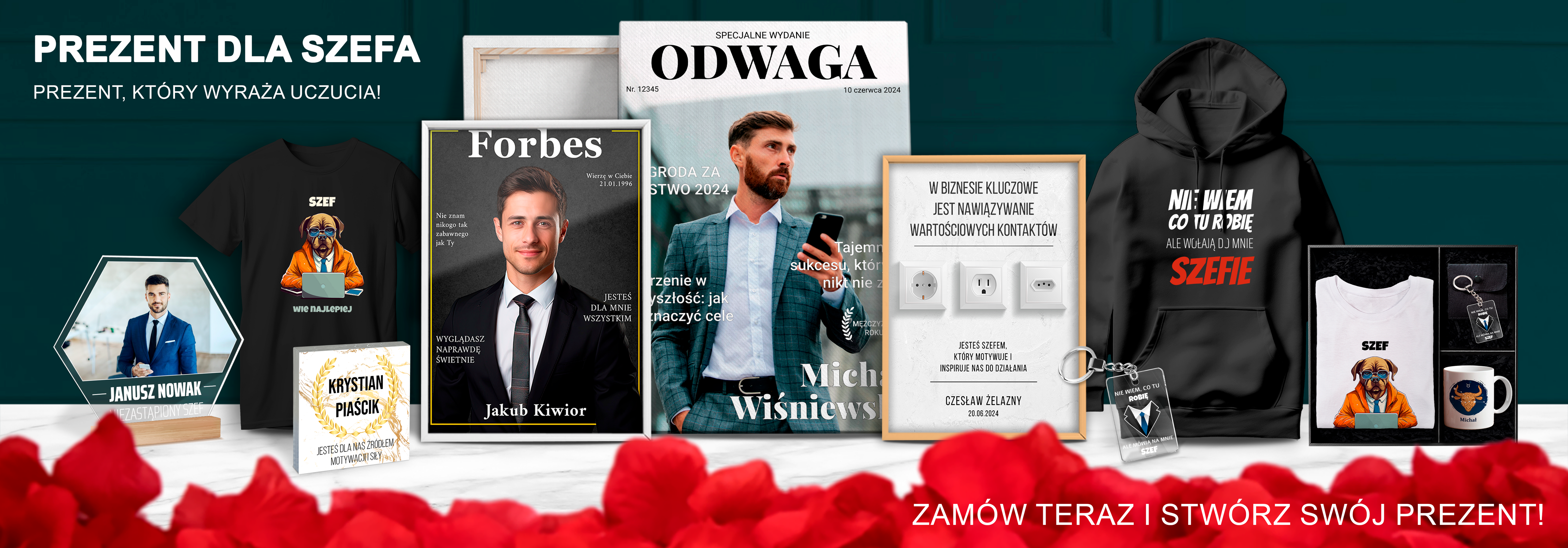 Aby wybrać prezent idealny, warto zastanowić się, jakie cechy wyróżniają Twojego szefa. Jeśli jest elegancki i profesjonalny wybierz stylowe zestawy prezentowe, eleganckie wieczne róże lub druki na szkle akrylowym, które ozdobią biuro. Dla kreatywnej i otwartej osoby warto wybrać obrazy na płótnie lub plakaty ze zdjęć. Szef z poczuciem humoru ucieszy się z kubka lub koszulki z zabawnym nadrukiem.