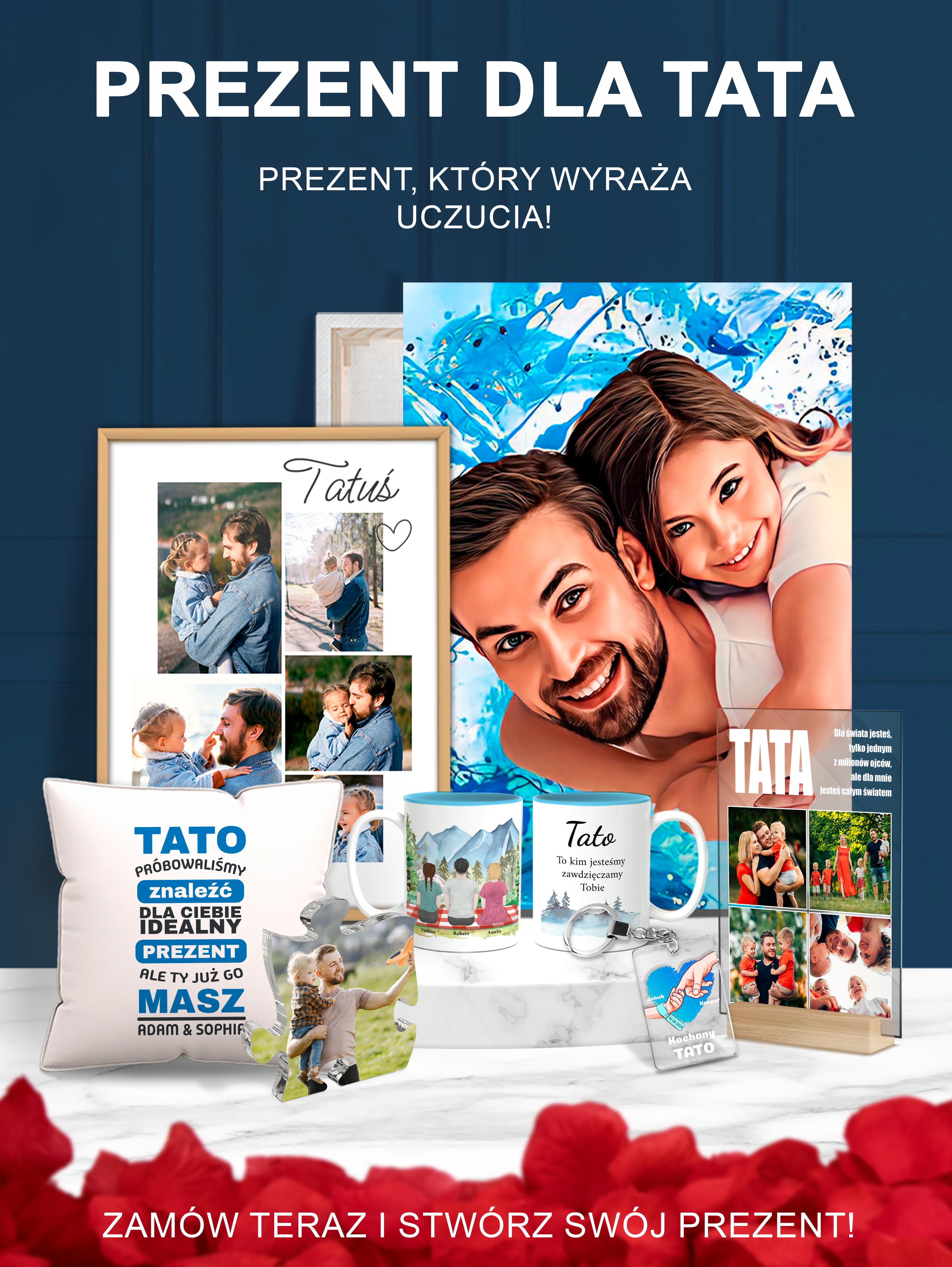 Tata to często ten cichy bohater w tle – człowiek, który zawsze potrafi znaleźć rozwiązanie, naprawić to, co się zepsuło, i powiedzieć coś mądrego wtedy, gdy najbardziej tego potrzebujemy. Choć może nie zawsze okazuje emocje tak otwarcie jak mama, jego obecność daje poczucie bezpieczeństwa i oparcia. Warto znaleźć taki prezent dla taty, który wyrazi wdzięczność i pokaże mu, jak ważną rolę pełni w życiu. W naszym sklepie znajdziesz produkty dla mężczyzn w każdym wieku, z różnymi zainteresowaniami i pasjami. Personalizowany prezent dla taty z indywidualnym nadrukiem, zdjęciem czy dedykacją to świetny sposób, by przekazać emocje. Niezależnie od okazji – urodzin, świąt, Dnia Ojca – warto postawić na coś, co zostanie z nim na dłużej i będzie wywoływać uśmiech! Poznaj nasze propozycje na prezent dla taty!