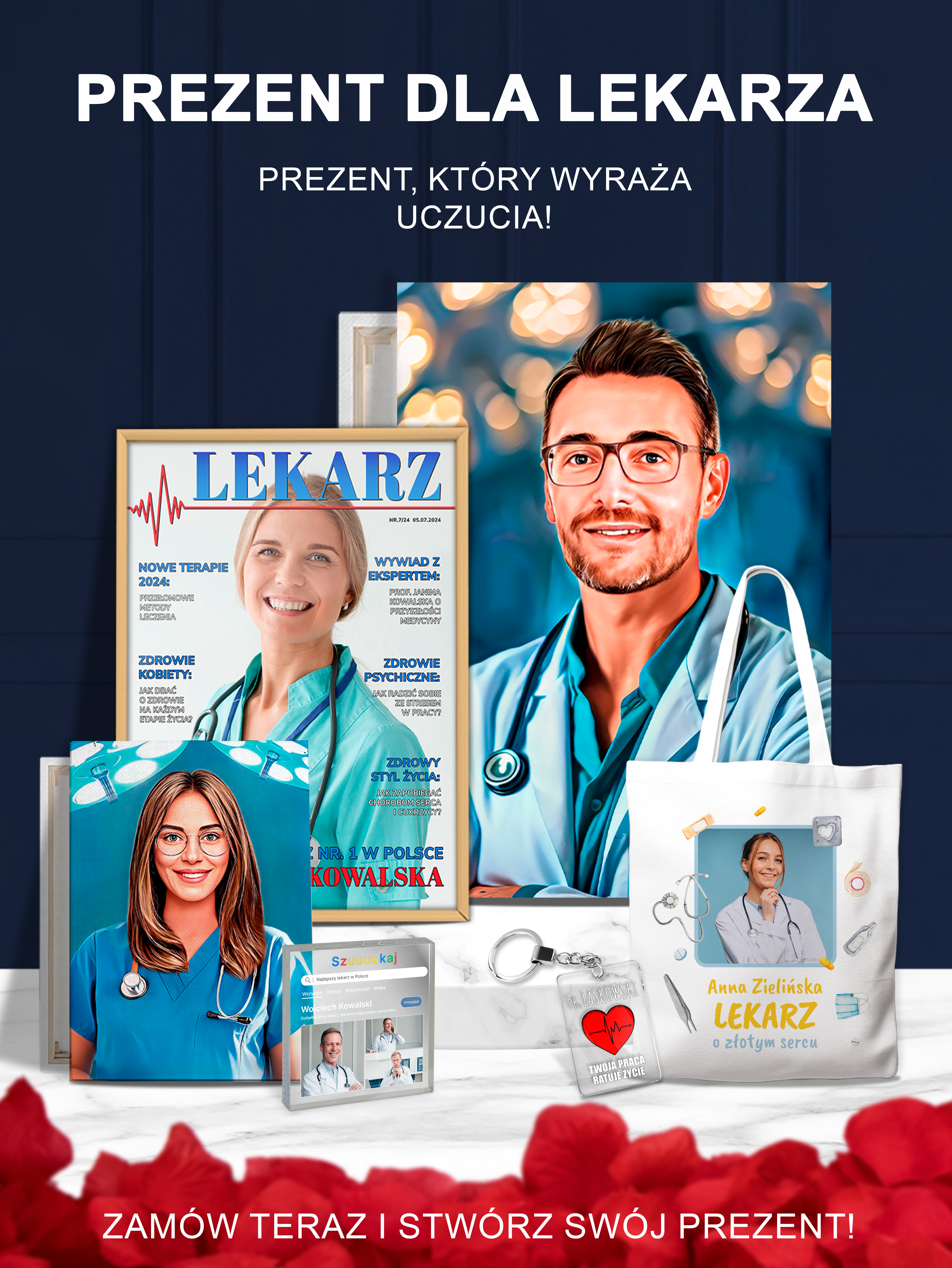 Wśród najlepszych propozycji na personalizowane podziękowania znajdują się eleganckie, drukowane, drewniane świeczniki, zestawy prezentowe z dedykacją, a także wyjątkowe obrazy i portrety na płótnie z motywami medycznymi. Bardzo popularnym symbolem wdzięczności jest również róża wieczna zamknięta w ozdobnym szkle – piękny, trwały upominek, który będzie przypominał lekarzowi o jego niezwykłej misji. Warto wręczyć taki prezent po zakończonym leczeniu, w dniu awansu, z okazji jubileuszu pracy lub po prostu wtedy, gdy chcemy wyrazić swoje uznanie. Znajdź idealne podziękowanie dla lekarza i wyraź swoją wdzięczność w wyjątkowy sposób!