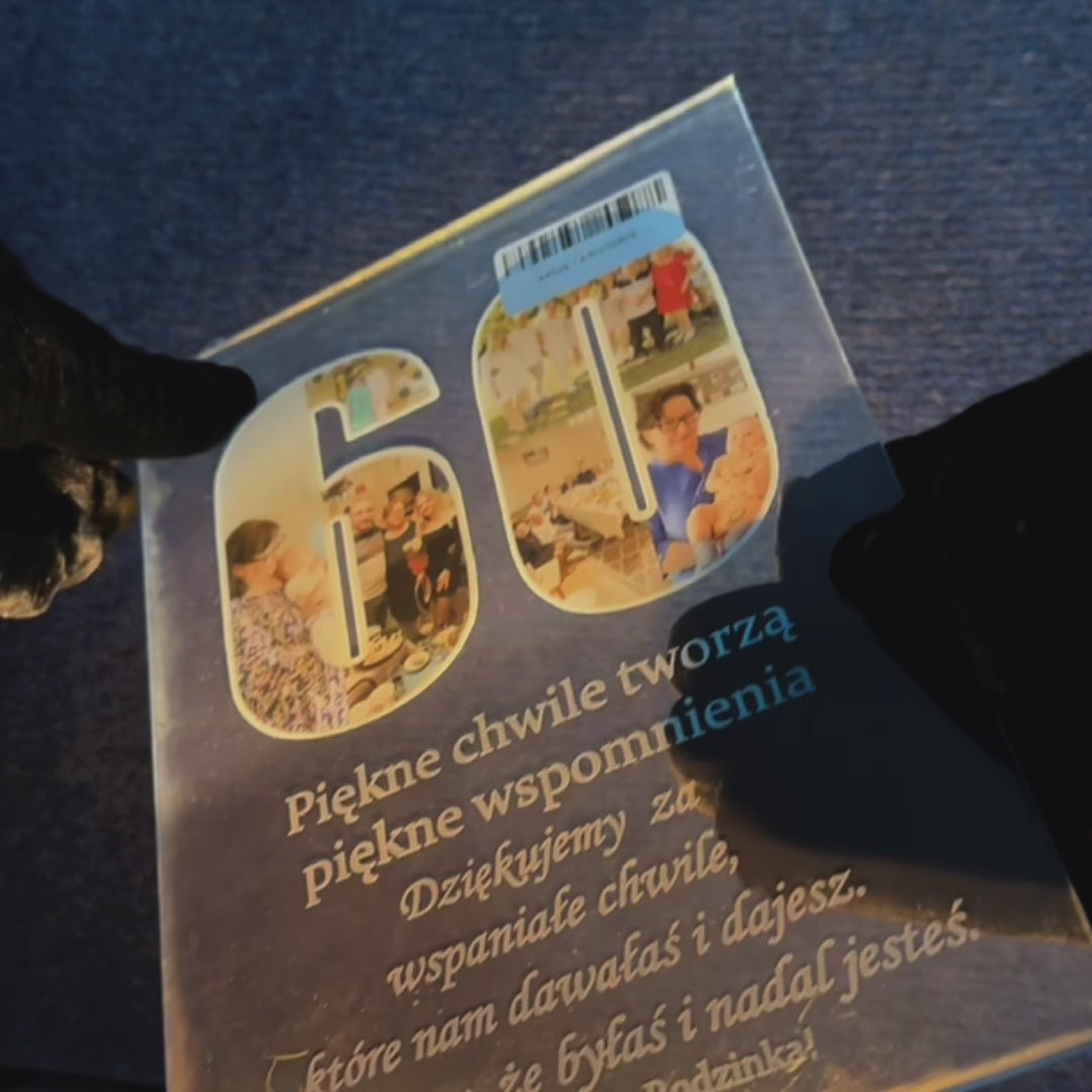 Drukujemy na szkle akrylowym (pleksiglas) o grubości 2 mm, które jest bezpieczniejsze i trwalsze niż zwykłe szkło.