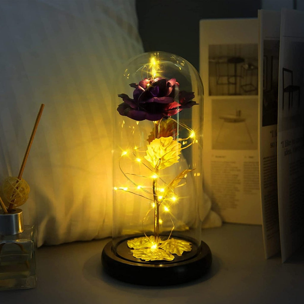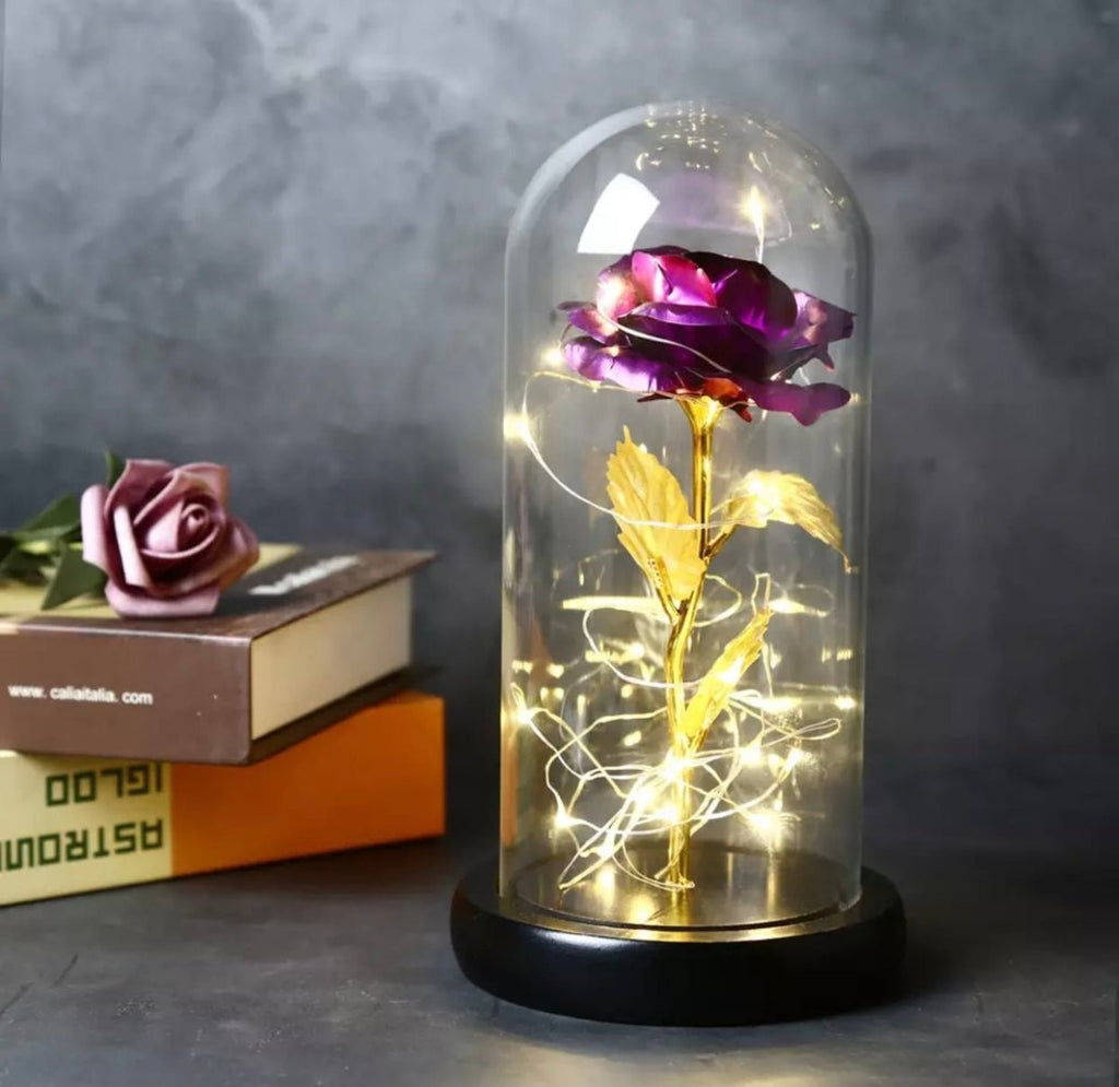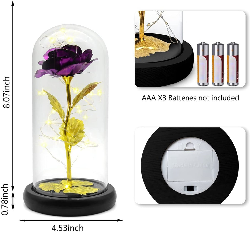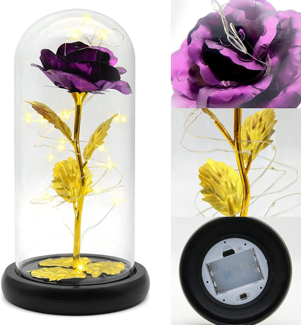 Fioletowa Wieczna róża świecąca w szkle LED, i do niej: