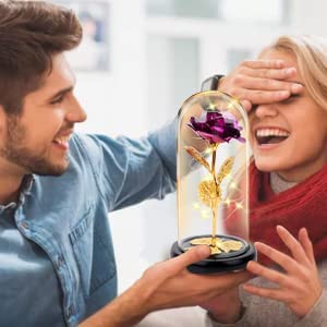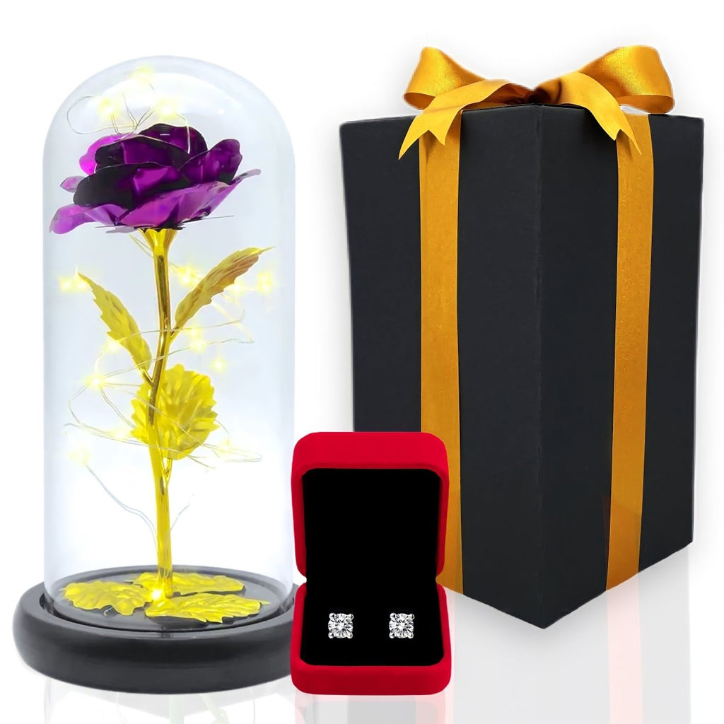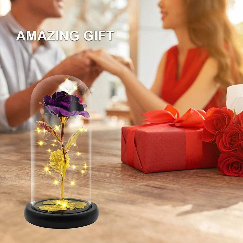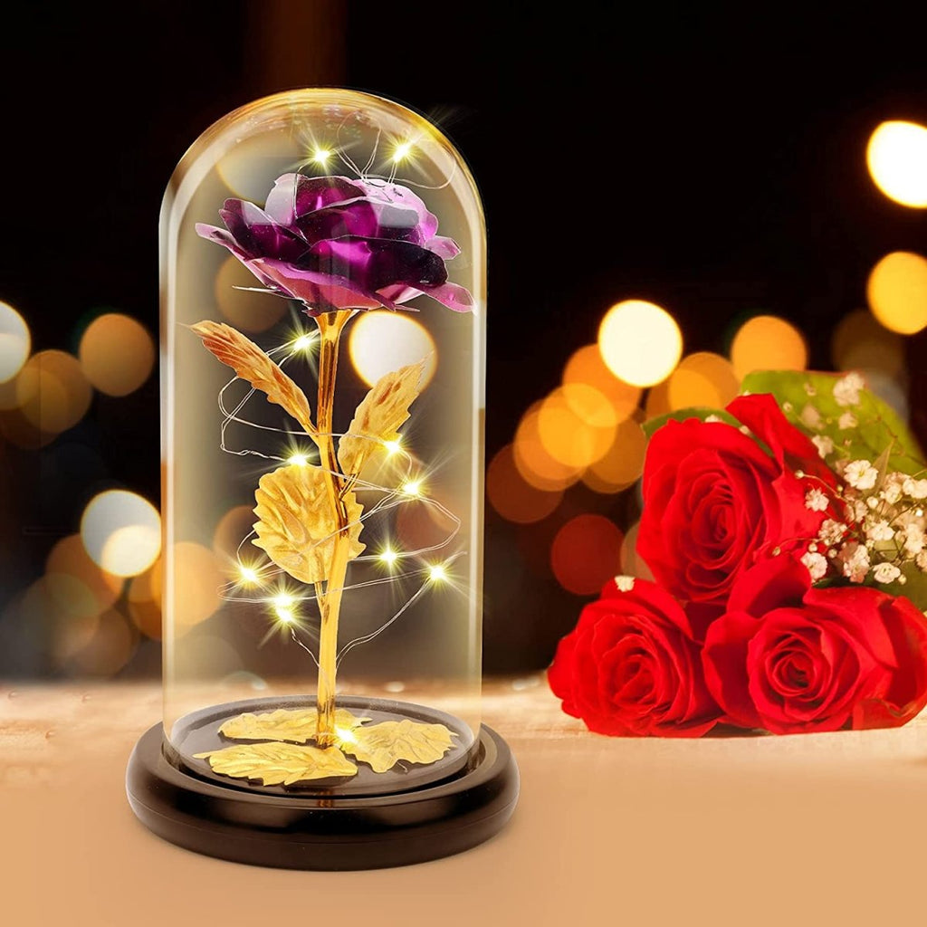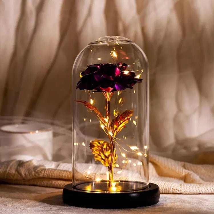 Fioletowa Wieczna róża świecąca w szkle LED, i do niej: