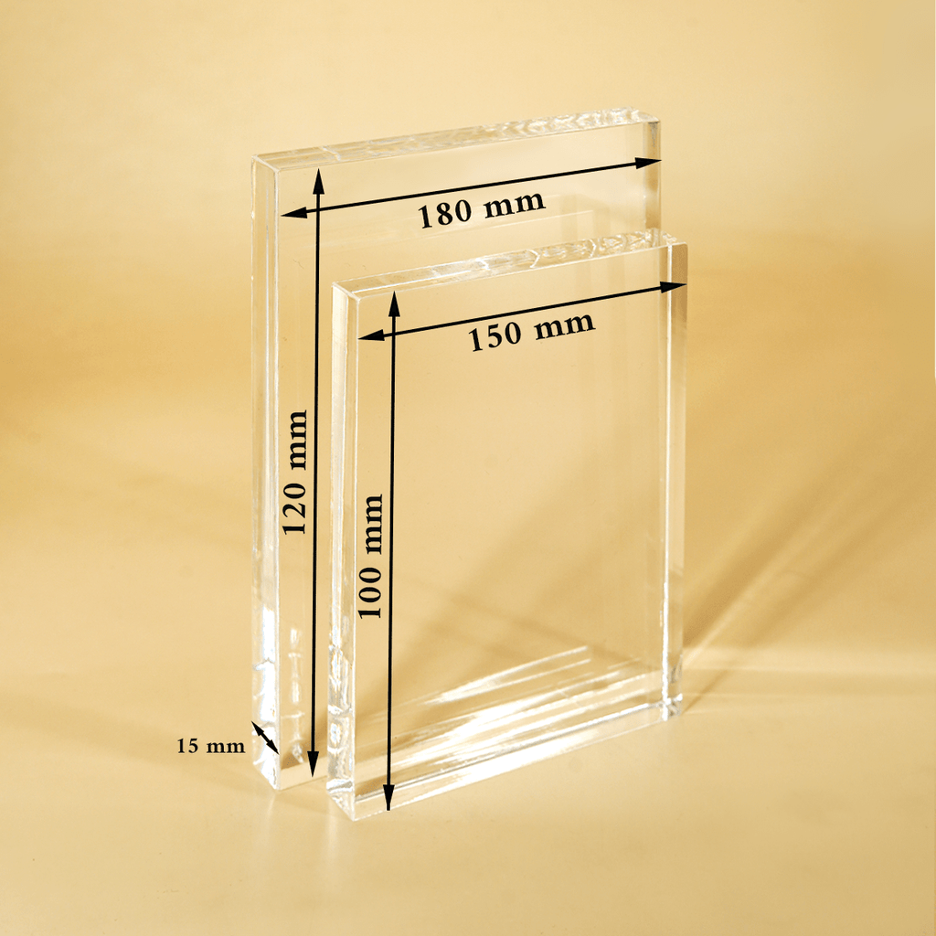 Drukujemy na szkle akrylowym (pleksiglas) o grubości 15 mm, które jest bezpieczniejsze i trwalsze niż zwykłe szkło.